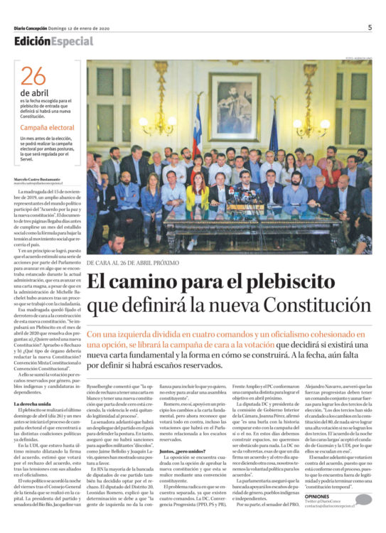 El camino para el plebiscito que definirá la nueva Constitución/El Diario de Concepción 12 Enero 2020 p. 5 Ediciones Especiales