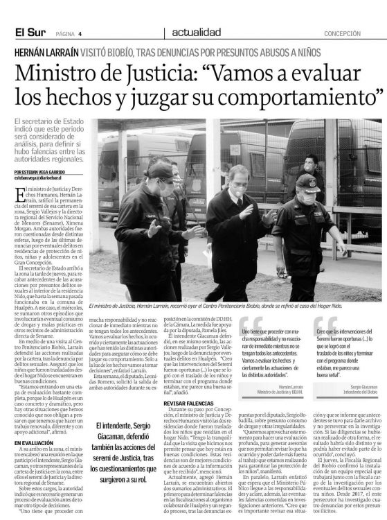 Ministro de Justicia: «Vamos a evaluar los hechos y juzgar su comportamiento»/ Diario El Sur, 09-05-2020, p.4
