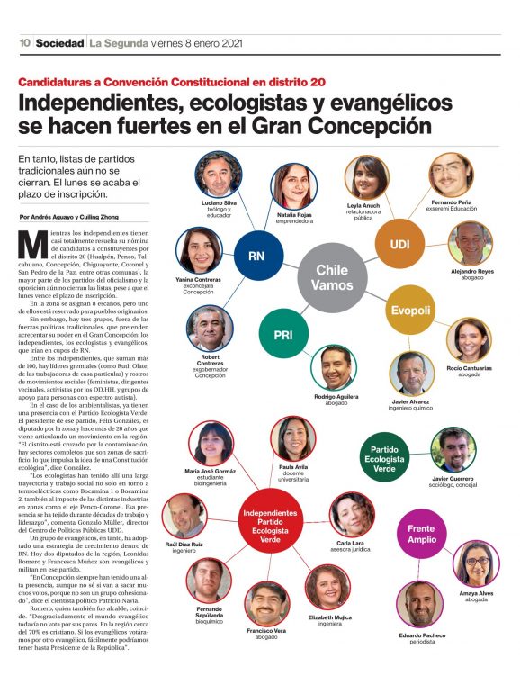 Independientes, ecologistas y evangélicos se hacen fuertes en el Gran Concepción/ Diario La Segunda, 08-01-2021, p.10